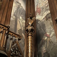 Рококо, классика, готика, русский и даже египетский стили — вы разберетесь, как получилось, что они уживаются в одном доме. Узнаете почерк архитектора Федора Шехтеля, которого Алексей Морозов пригласил переделать первый этаж. Пройдете через порталы, претендующие на пафос древних святилищ. Прикоснетесь к старинным ручкам и замкам, которые трогала могучая рука Морозова. Полюбуетесь лепниной, барельефами, витражными окнами и, конечно, панно Врубеля.